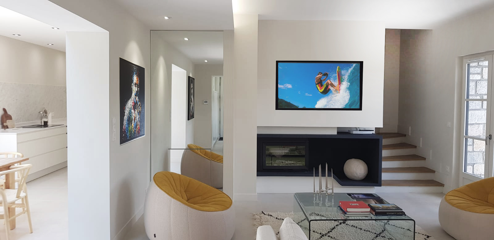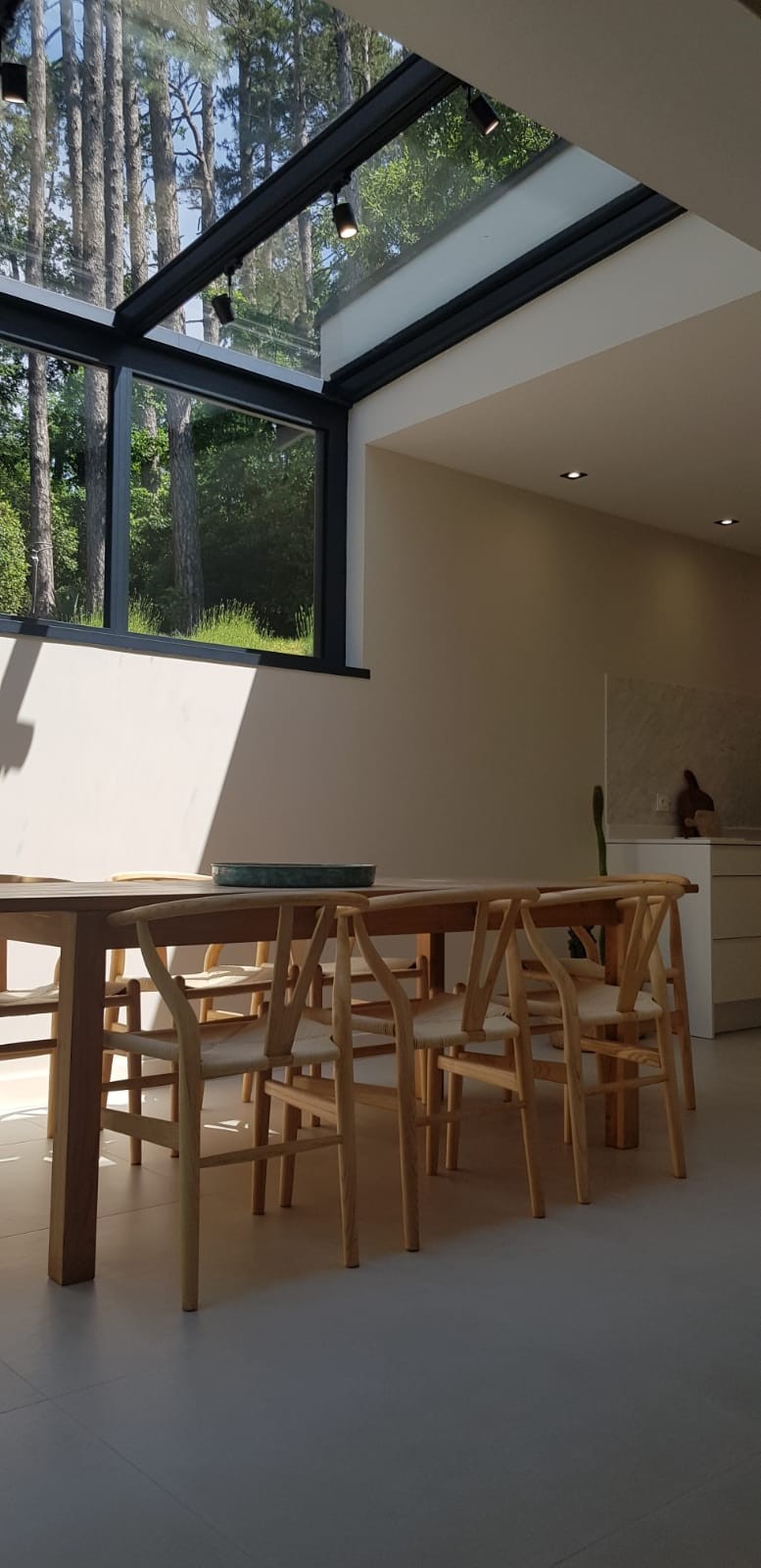 Minimalist yet expressive, the Bronet Residence brings warmth and clarity to a contemporary French home. Clean architectural forms and a soft palette of ivory, oak, and matte black are elevated by playful touches bold art, sculptural accents, and bursts of mustard yellow. Natural light pours in through generous windows and a dramatic skylight, highlighting the simplicity of materials and the quiet elegance of space. This is a home where design is not just seen, but felt subtle, serene, and thoughtfully personal.